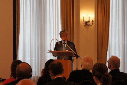 在ドイツ日本国八木毅大使から、本セミナーは、国際仲裁分野にとどまらず、日独経済関係の強化や「法治国家」をより効果的に実現することに貢献するものである旨挨拶がされました。