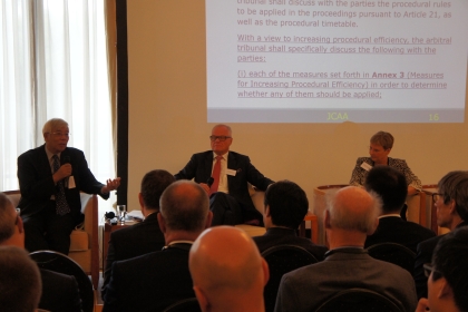 第1セッションでは、「より効率的な手続のための仲裁規則の改革」をテーマとしたパネルディスカッションが行われました。